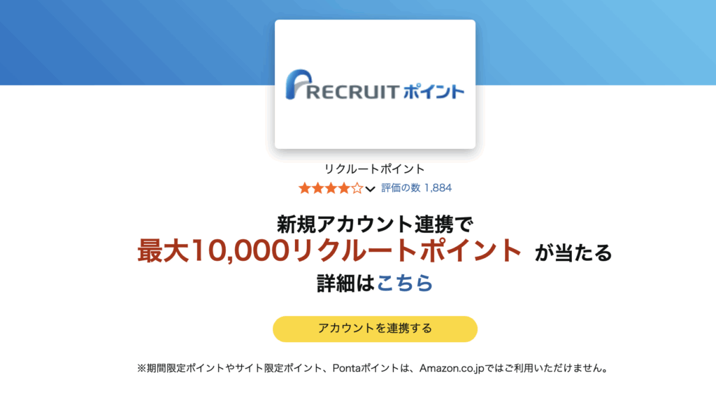 こちらのページからアマゾンとリクルートアカウントを連携すると最大10,000Ptもらえます。