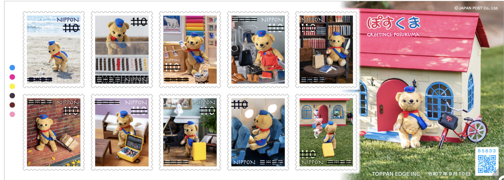 郵便局は、くまのぬいぐるみの「ぽすくま」をデザインしたグリーティング切手「ぽすくま」を2025年9月10日発行します。